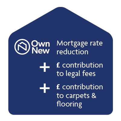 Reduced mortgage rates for the initial fixed term could be available to our customers through the Own New Rate Reducer Scheme for an initial fixed term. You’d still own 100% of your property. Selected plots, terms and conditions apply. Rate reduction only with Own New over initial fixed term. Participating lenders and qualifying mortgages only.